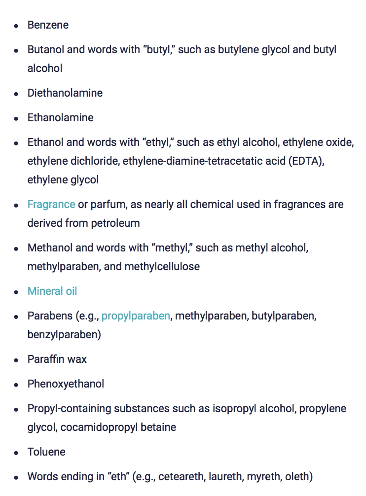 Did you know there are petrol products in approximately 22% of your makeup and skincare products? According to the Environmental Working Group, while the ingredient is quite common in makeup and skincare products alike – often showing up in lipstick, moisturizer, sunscreen, cleansers – it’s both extremely toxic and readily absorbed by our skin.